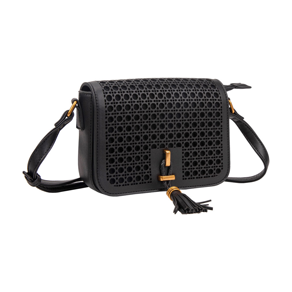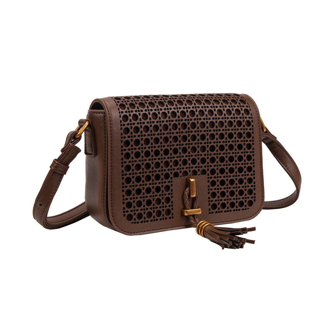 Confeccionadas em material liso com recorte frontal à laser remetendo a técnica de cestaria» Metais vintage gold »