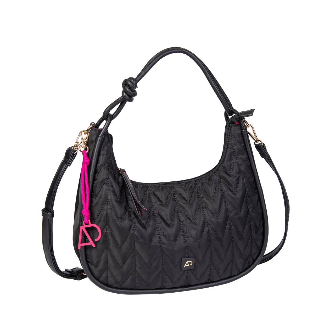 Confeccionada em nylon com matelassê com detalhes em PVC liso » Metais em banho light gold » Chaveiro decorativo com AP » Placa personalizada » Puxador de PVC com costura contrastante » Alças de gorgorão acetinado » Forro contrastante na cor pink » Bolso no verso.