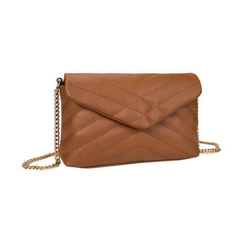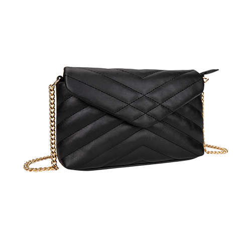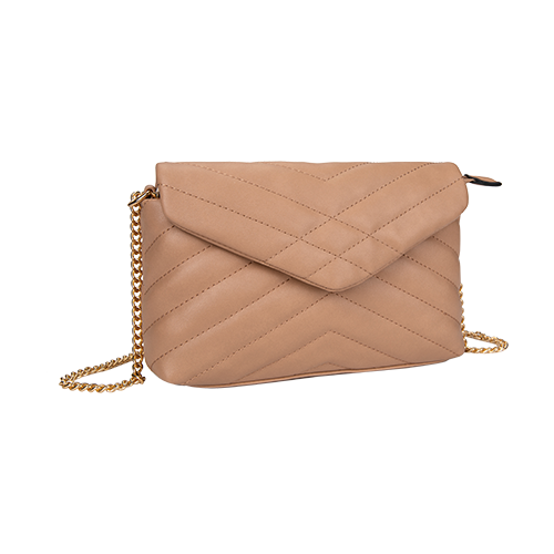 Confeccionadas em material PVC liso com trabalho de matelassê » Detalhe de corrente na alça » Banho do metal light gold » Forro na cor nude.