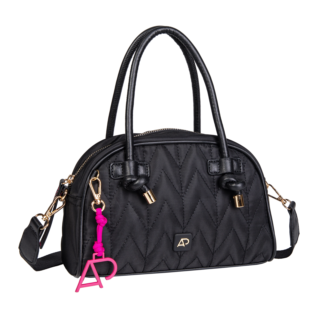 Confeccionada em nylon com matelassê com detalhes em PVC liso » Metais em banho light gold » Chaveiro decorativo com AP » Placa personalizada » Puxador de PVC com costura contrastante » Alças de gorgorão acetinado » Forro contrastante na cor pink.